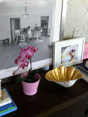 The furniture was moved last week when the sofa was delivered and the sideboard got shimmied into it’s new spot. I styled it, using what  I had  from different areas in the house. I’m unsure about the large picture, but I like how it balances out all the feminine, so until I decide, it’s just going to lean there.