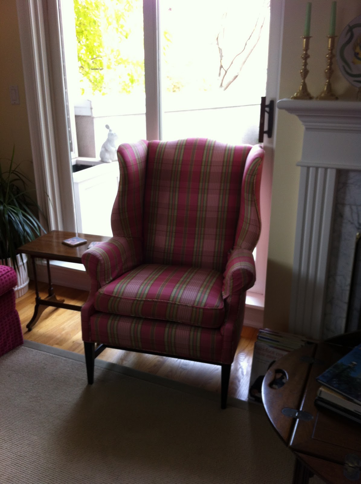 The wing chairs is going to have this stripe action.