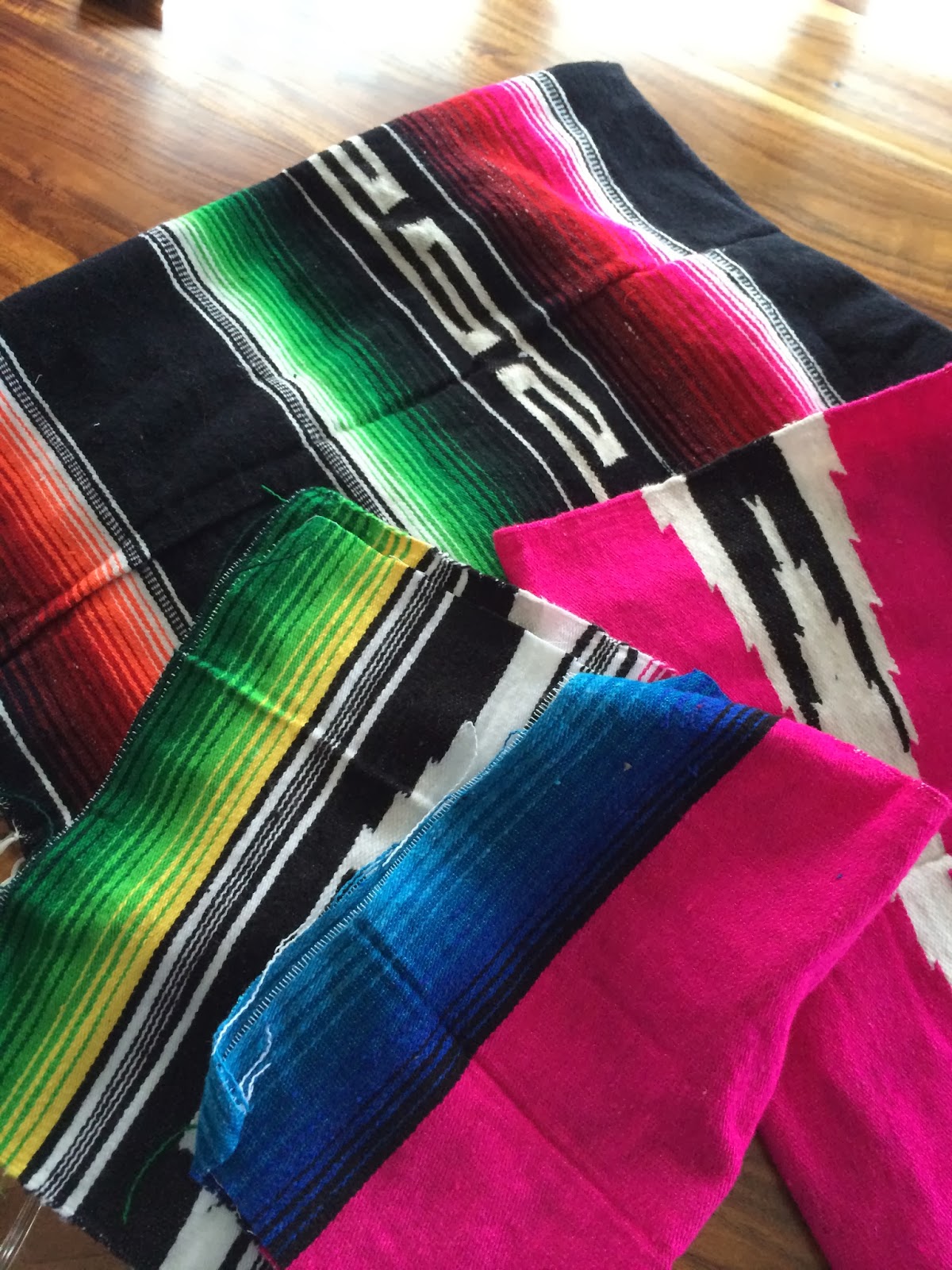 Over the weekend I got busy making a few pillows out of some ponchos we picked up on our recent trip to Mexico.