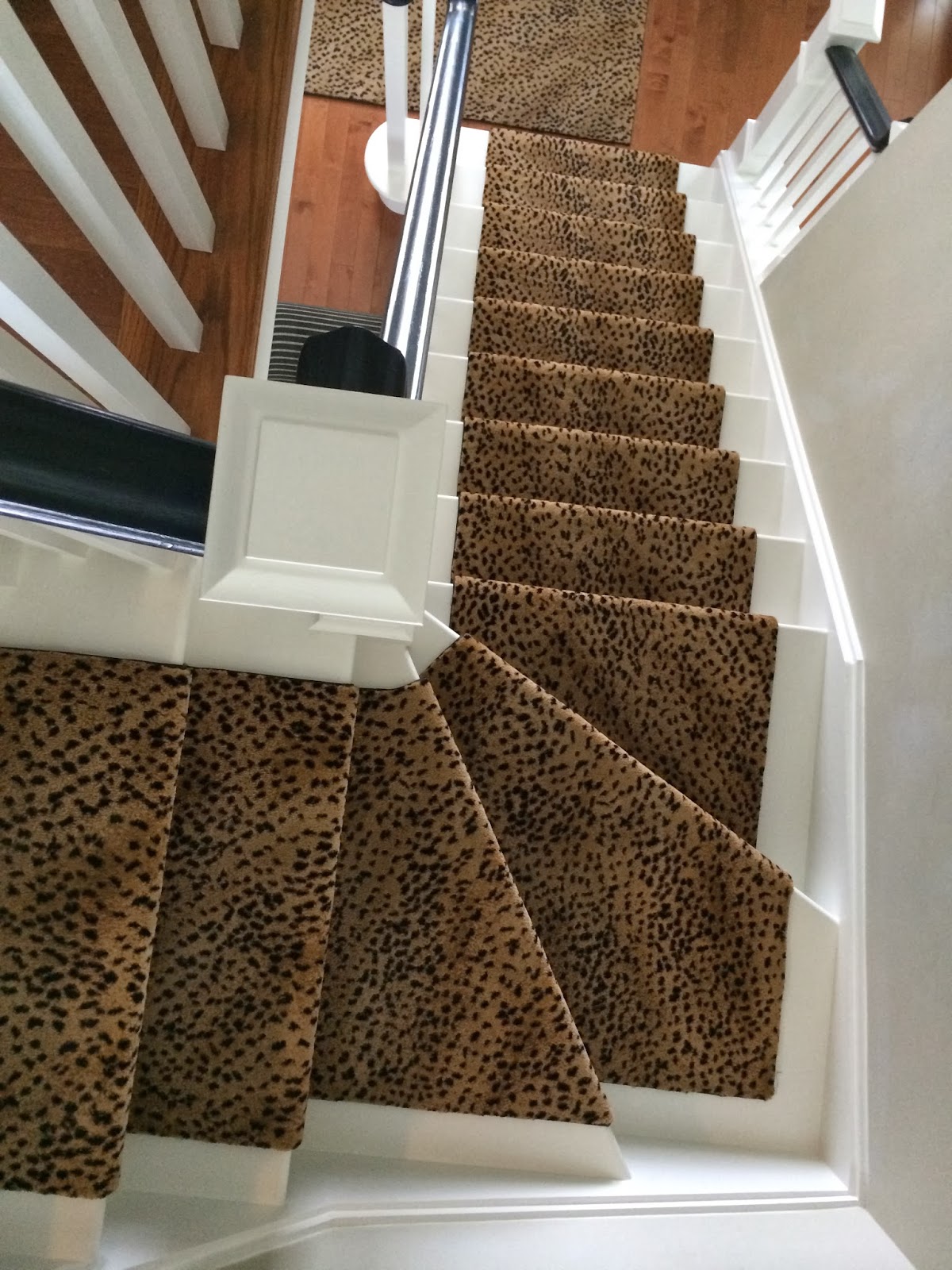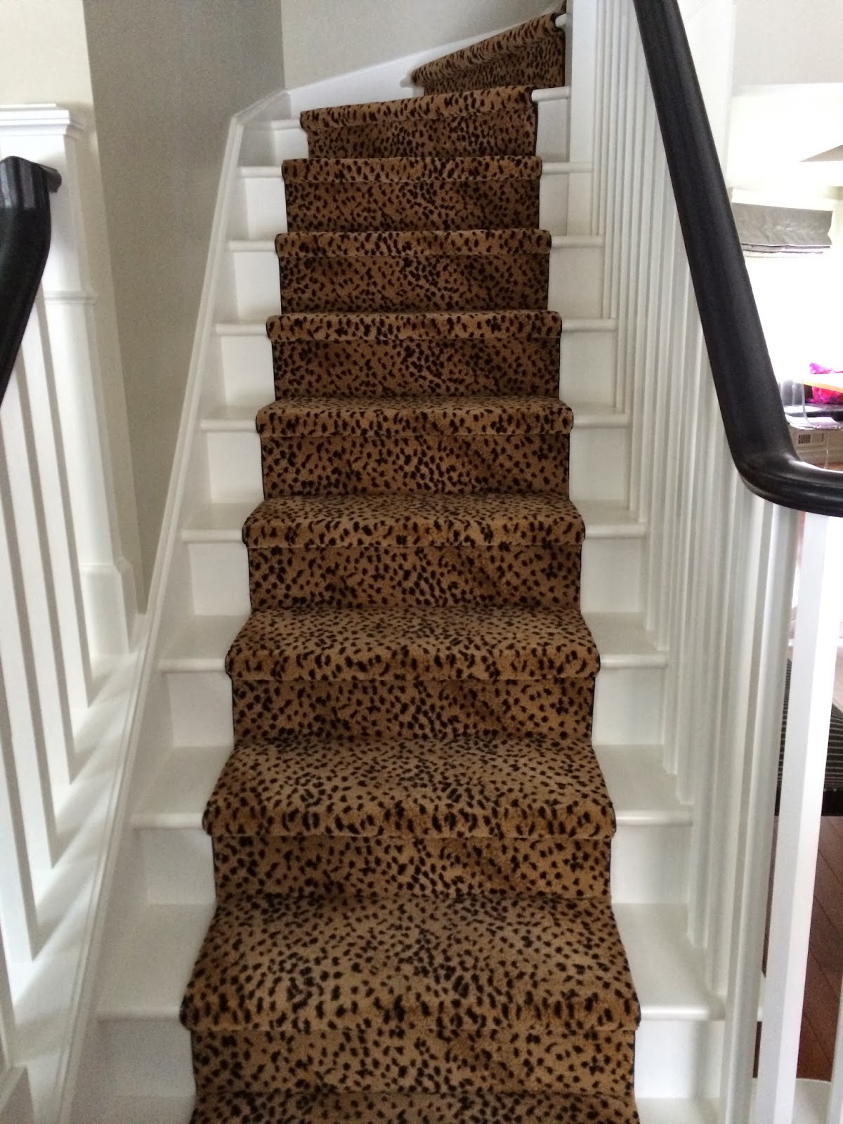 Yesterday a very talented gent named Simon re-installed my leopard carpet runner, I say talented because he literally had to piece together the 12 pieces of carpet that were removed & no one is the wiser.