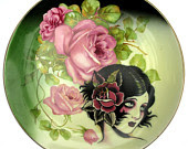 Beat Up Creations is a quirky little shop on Etsy. The first time I laid my eyes on this art I was like “WHAT!” The artist, Angela Rossi takes beautiful antique plates and transforms them into whimsical and one of a kind pieces of art. Feast your eyes on this.
