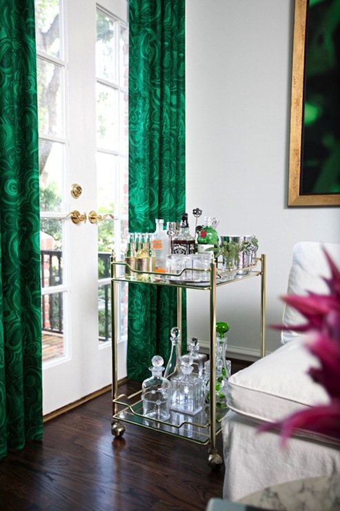 Now, you might not be able to have the super expensive fabric as the drapery but perhaps a chair can be upholstered in it or cushions made.