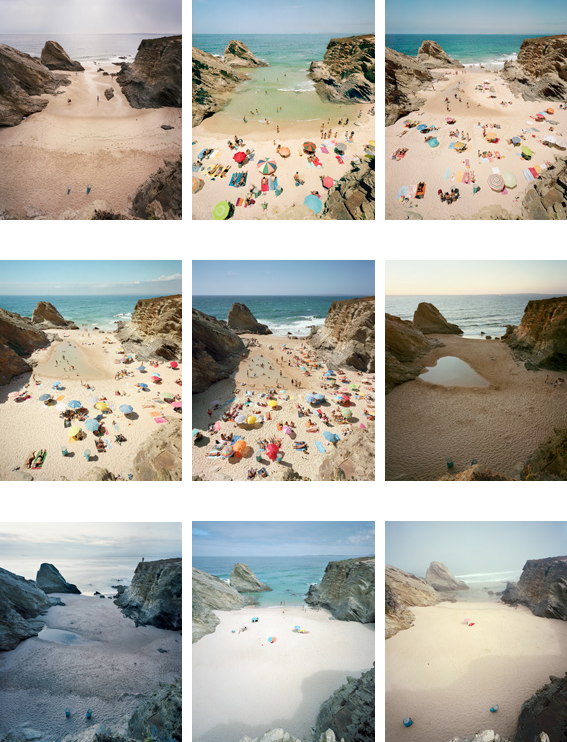 The same beach, Praia Piquinia & its bathers were photographed by Christian Chaize at different times of day over a period of 8 years.