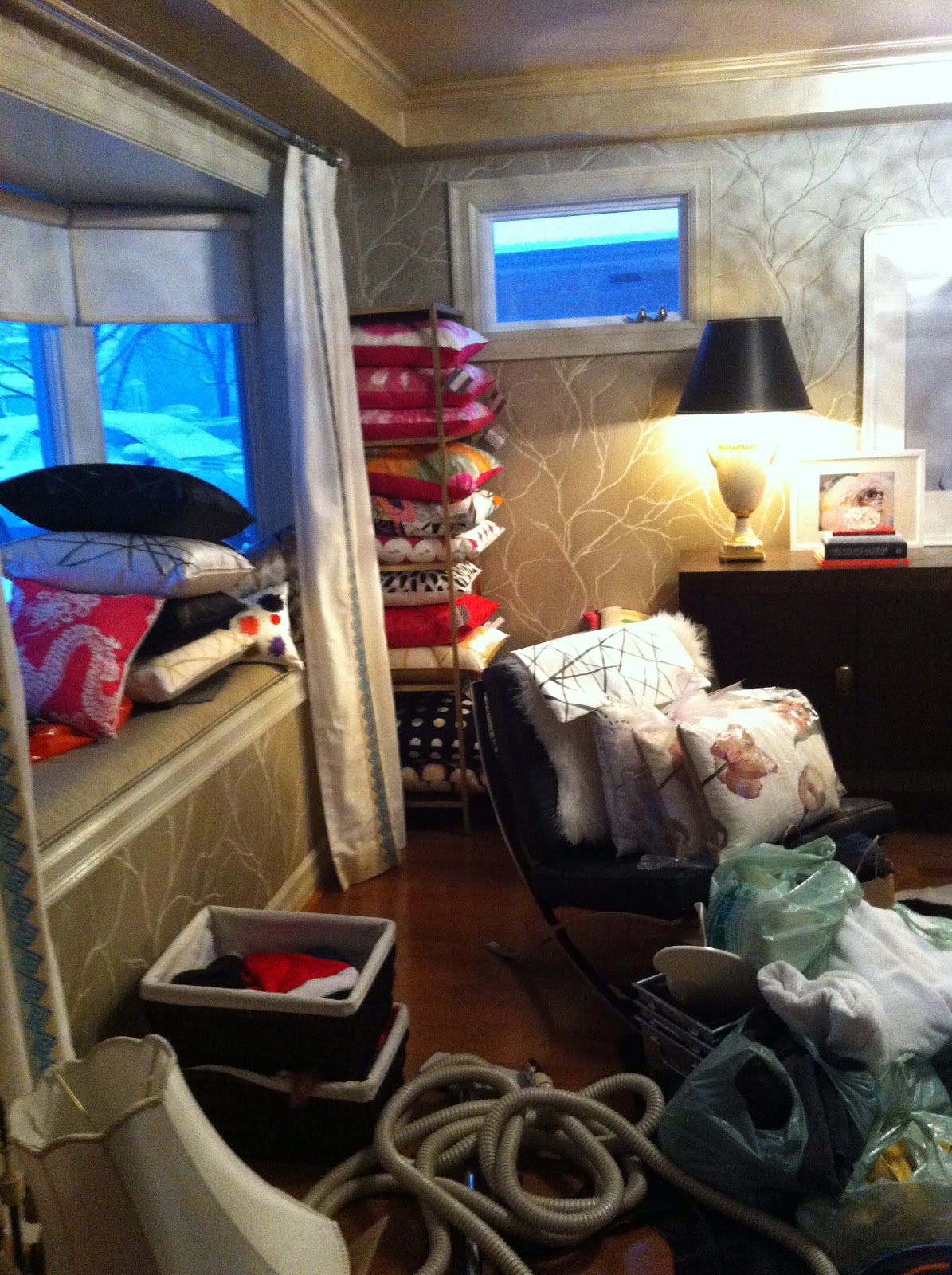 I began my own design business, so we decided to sell the dining room furniture and have it become my home office. It has worked out well, but everything and I mean everything in our home, that has no home, ends up in there and it’s not a pretty sight, especially since you see this room from all angles.