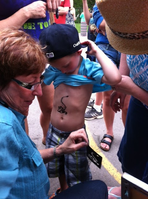 O got a the exact same tattoo of a dragon on his tummy as last year & kept showing it off.